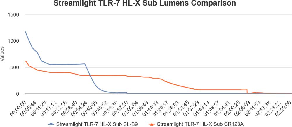 In our lumen testing, the TLR-7 HL-X Sub provided the following measured results: